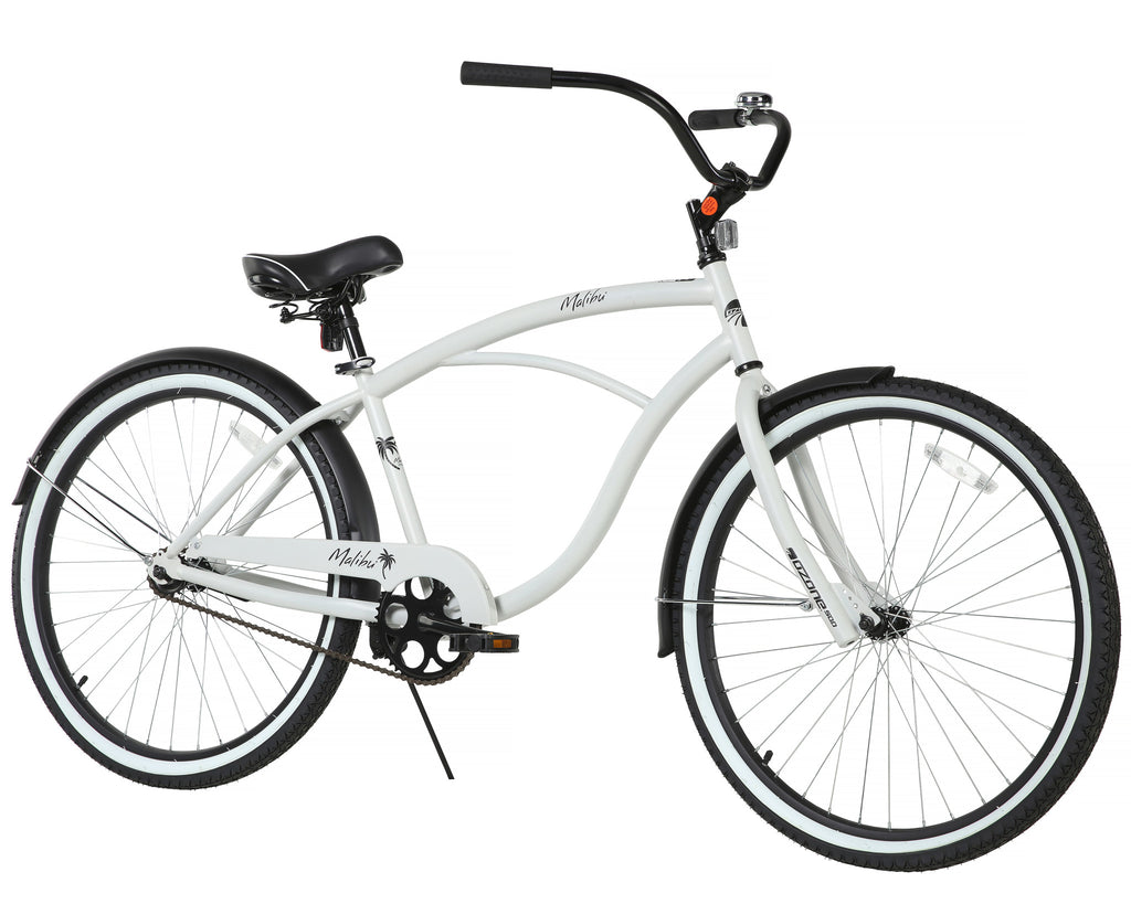 Feel the ocean breeze as you ride on the Ozone 500 Malibu 26-inch Cruiser Bike by Dynacraft. This stylish beach cruiser features a chic white paint finish with black accents so you can feel fashionable while also channeling beach vibes. The Malibu is a timeless classic full of old-school charm and fun. A handlebar bell and padded seat make this a great option for an evening ride to your favorite local restaurant or an afternoon cruise along the shore. The coaster brakes make braking safe and easy, no cables required. This bike is all about comfort. Grab your friends and hit the boardwalk on the Ozone 500 26-inch Cruiser Bike by Dynacraft.