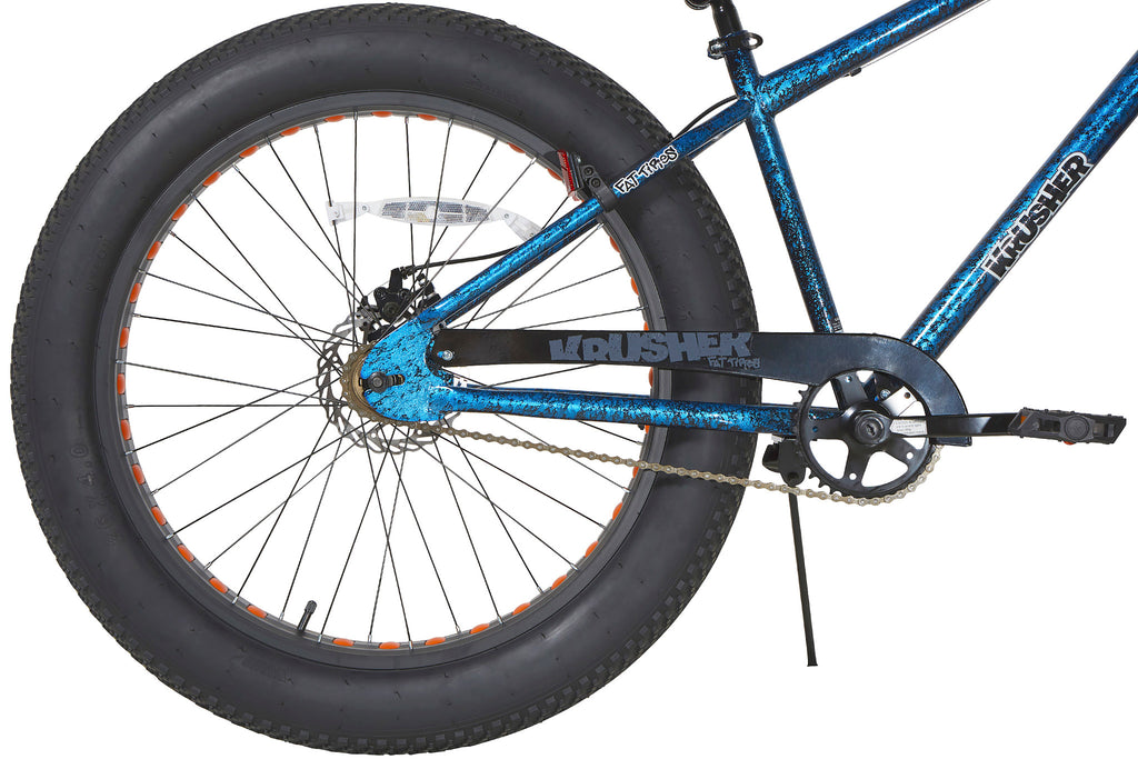 Get ready to conquer any terrain and weather condition with the single-speed Dynacraft 26-inch Krusher Fat Tire Bike. Its sturdy steel frame is built to last, making it a reliable companion for all your outdoor adventures. The mountain bike-style handlebar allows for easy and precise steering, while the disc brakes give you superior stopping power. And when you're ready to take a break, the kickstand will keep your bike upright until you're ready to hit the road again. With the Dynacraft Krusher Fat Tire bike, you'll be ready to take on whatever comes your way.