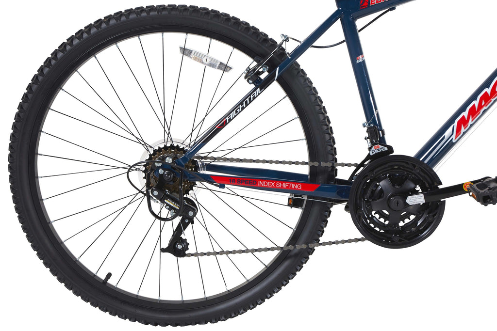 This sleek ride features a solid steel frame with a black and gray deluxe paint finish with custom graphics and white, black, and red accents. This super tough bike is equipped with a front shock designed to eat up the bumps, front and rear linear-pull brakes to make stopping a breeze, and 18-speed index shifter gears to make climbing a blast. And, with our super padded seat with quick-adjust seat post clamp, this 26-inch bike by Dynacraft is not only safe but comfortable and easy to set up too! If you are ready for adventure, grab the Magna Echo Ridge 26-inch bike and experience fun on the trails and pathways like never before!