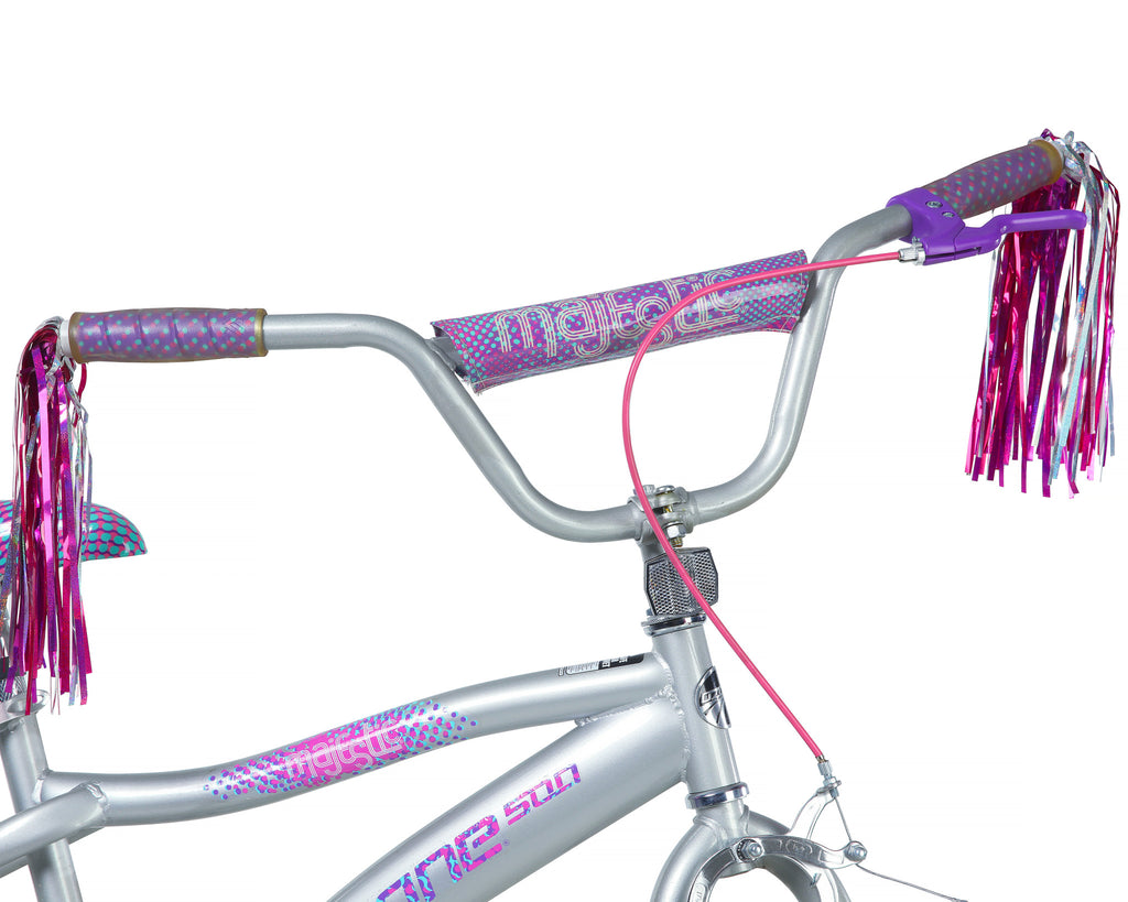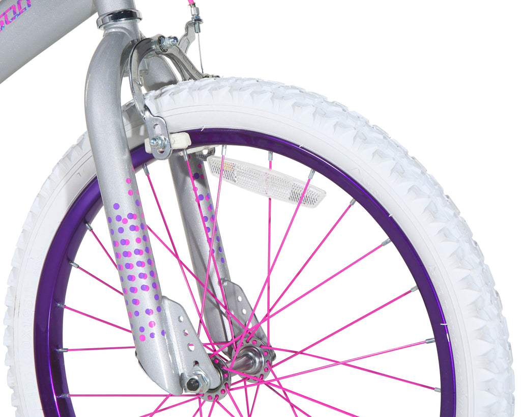 She will love riding the magical Ozone 500 Majestic 20” Bike! This charming bike uses a deluxe paint finish using sparkly silver for the sturdy steel frame with pink, purple, blue, and white accen...