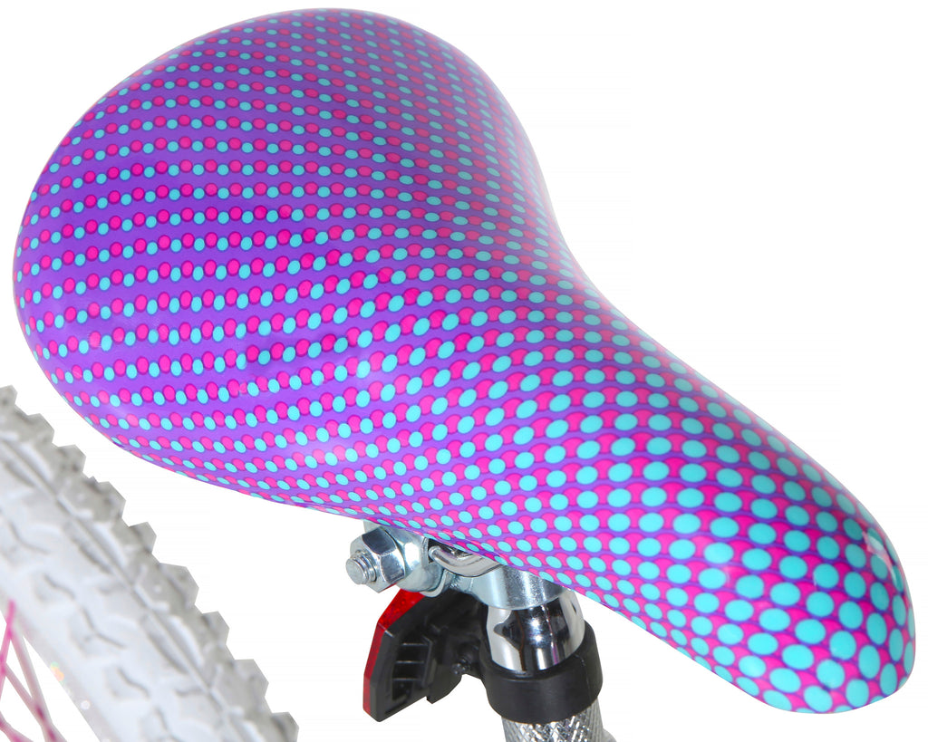 She will love riding the magical Ozone 500 Majestic 20” Bike! This charming bike uses a deluxe paint finish using sparkly silver for the sturdy steel frame with pink, purple, blue, and white accents throughout the bike. The adorable handlebar bag can fit some of her favorite small toys and she will love the shimmery handlebar streamers! Your little girl can ride comfortably on this 20” bike due to the custom padded saddle and matching comfort handlebar grips. She can stop easily with the rear coaster brake and font caliper brake. Watch your sweet girl enjoy riding her new Ozone 500 Majestic 20” Bike all season long!