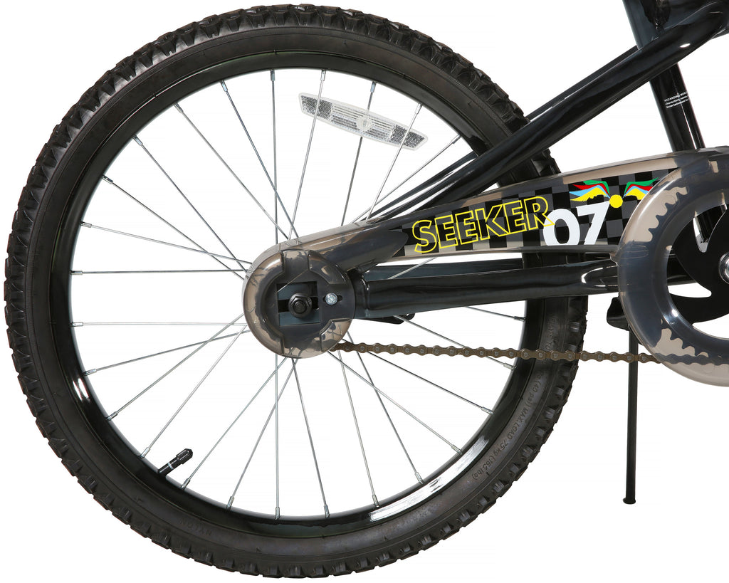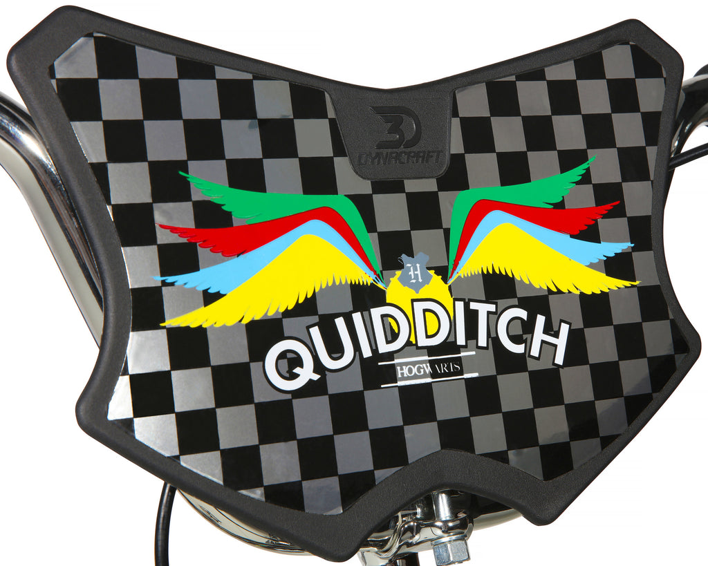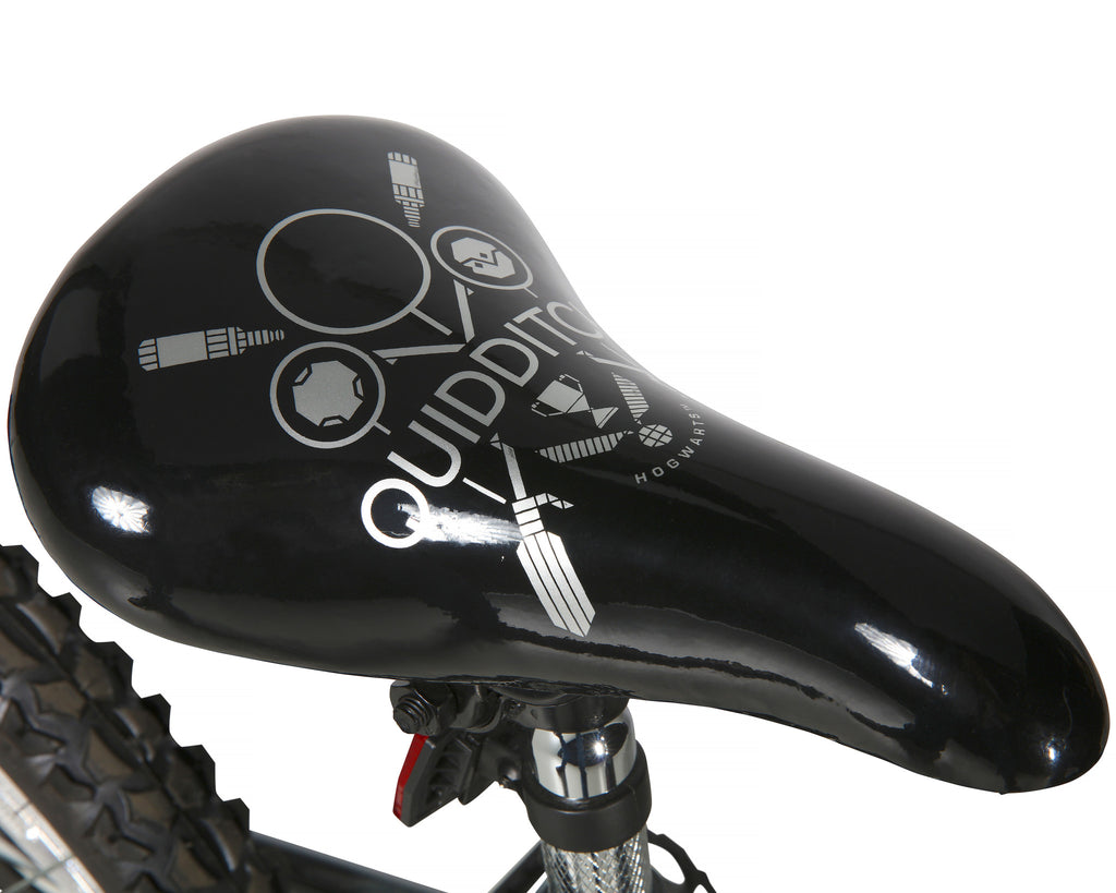 Embark on a journey around the enchanted grounds of Hogwarts with the Harry Potter 20-inch Bike by Dynacraft. This magical-looking bike boasts a deluxe paint finish and custom Quidditch graphics on a sturdy steel BMX-style frame that is sure to cast a spell on any wizard or witch. Its wide tires and super comfy seat provide a smooth ride, just like a Quidditch stick. Plus, the solid rear coaster brake and front caliper brake ensure that any unruly magic is kept safely under control. Setting up and standing this bike is a cinch with its quick-adjust seat post and solid steel kickstand. Designed for exciting adventures, this single-speed bike comes equipped with a Quidditch-themed handlebar-mounted shield that will get your young rider ready for game day. If you are ready to embrace courage, determination, and bravery, hop on our Harry Potter 20-inch bike and let it whisk you away on Hogwarts-inspired adventures!
