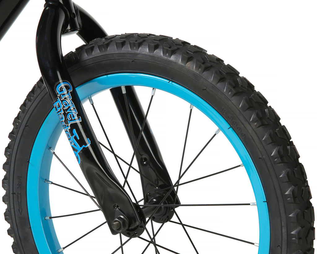 The Magna Gravel Blaster 16-inch Boys Bike by Dynacraft is the perfect choice for young riders who are ready to cut up some dust. With a sleek black finish on the frame and bright blue accents on ...
