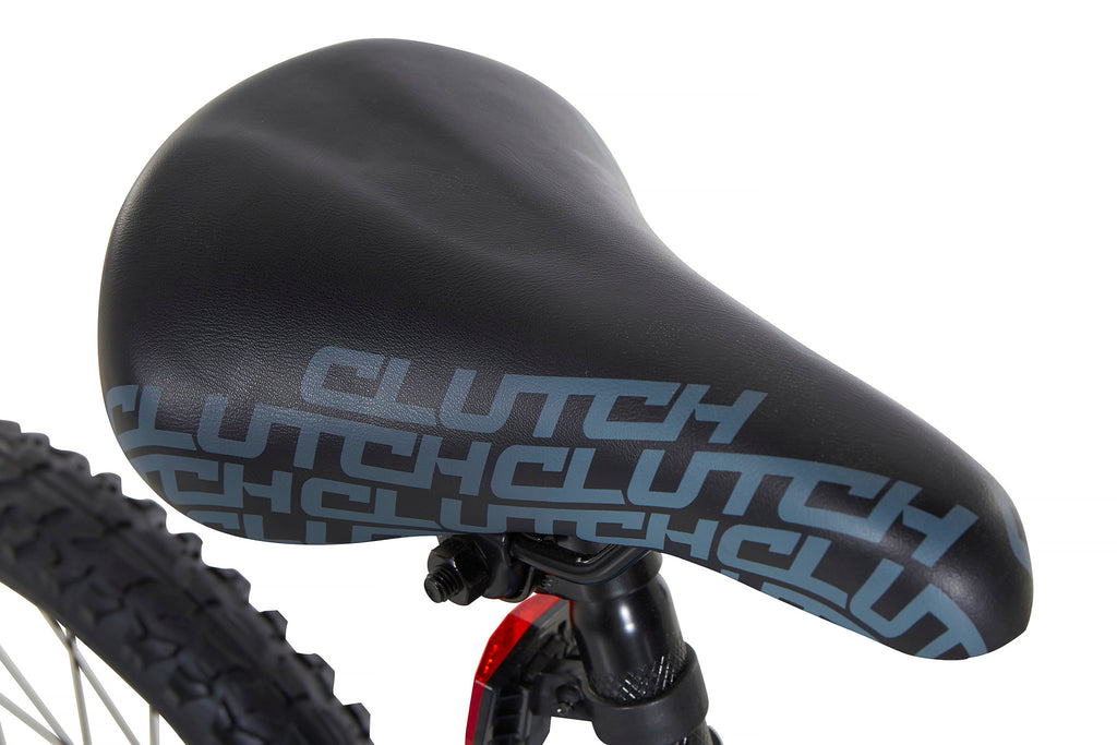 This 18” bike is going to come in clutch for your little one! The 18” Everest Clutch bike features a bright blue BMX frame with custom red, white, and black graphics and accents. He will appreciate the padded comfort seat and think the racing shield is super cool. Your kiddo can ride safely due to the sturdy steel frame and front hand brake and rear coaster brake. The training wheels are adjustable and removable which allows him to ride on his own terms. He will have hours of fun when riding the 18” Everest Clutch bike!