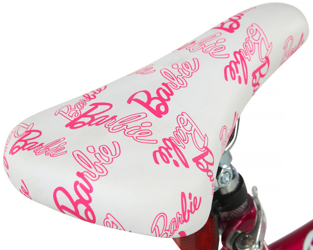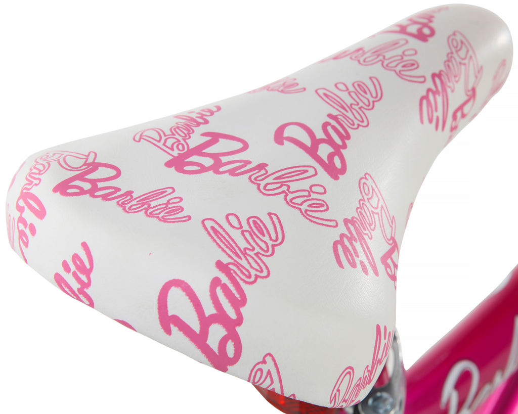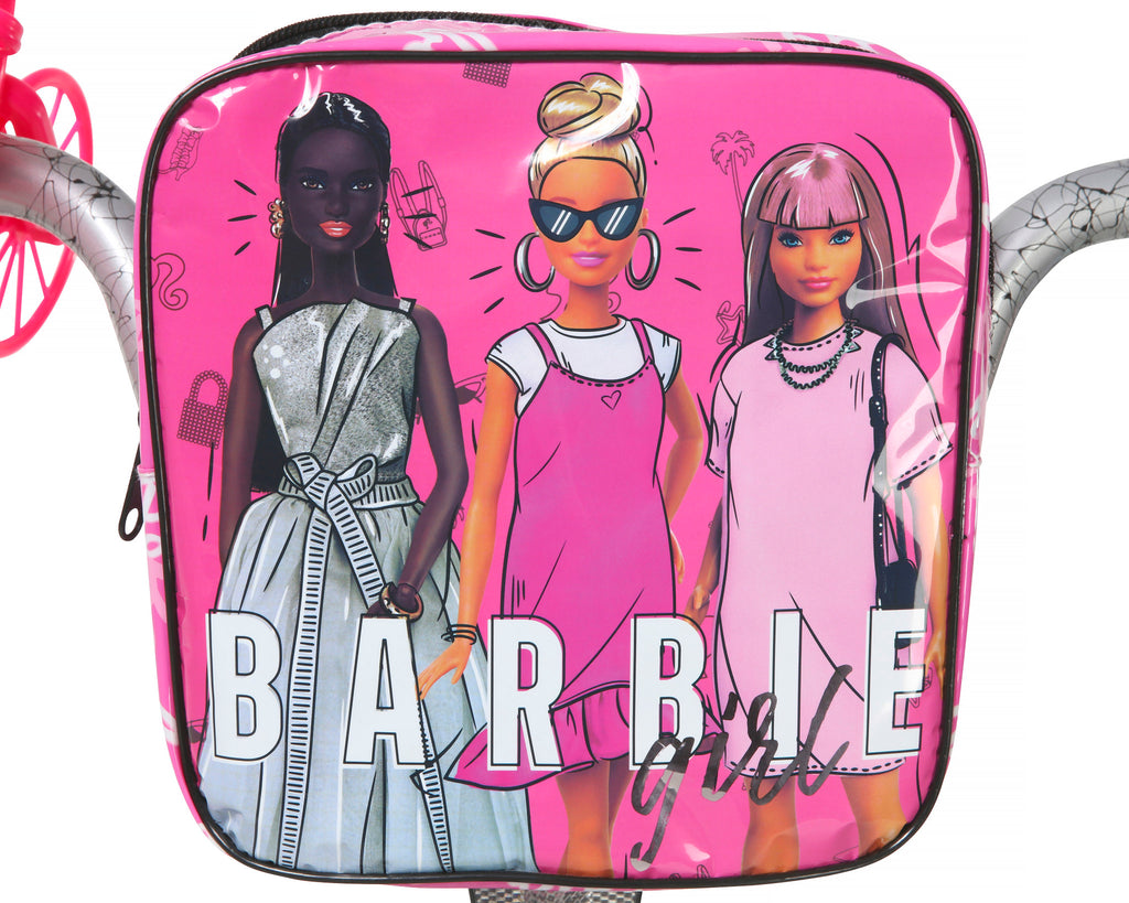 Dazzle and shine on the 18-inch Barbie Bike by Dynacraft, the ultimate girl’s bike that's as sparkly as it is stylish! Featuring a sturdy steel BMX frame with a deluxe pink paint finish and authentic Barbie graphics, this bike exudes charm and excitement at every turn. Complete with a custom Barbie handlebar bag for all your essentials, colorful streamers that swing in the breeze, and removable, adjustable training wheels for confident riding levels, this 18-inch Barbie bike is the epitome of fun and fashion. Get ready to pedal your way into a world of imagination and friendship, where every ride is a celebration of joy and memories!