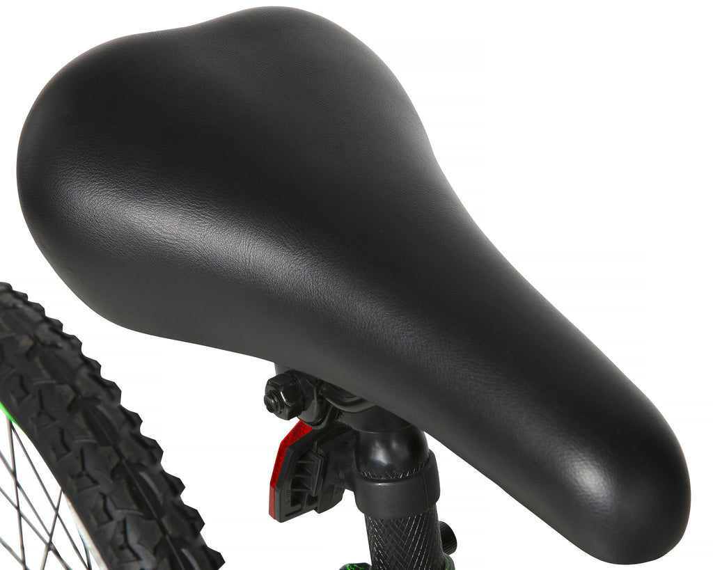 Conquer the sidewalk with the Dynacraft Invader 20-inch Boys Bike. This bike is the ultimate cool with its bold patterned, black-and-green Digi camo paint finish! The full-suspension mountain bike frame offers unparalleled comfort and stability as your young ones conquer all sorts of terrains. Your child will enjoy the control that comes with a 6-speed Shimano derailleur, which lets them pick the perfect speed for their ride. The Invader is also equipped with an adjustable seat post for easy adjustments for children of all sizes. A front and rear V brake provide maximum stopping power and control. The 20-inch tires and cool design make this bike a great option for boys ages 6-10. Make a statement today with the Dynacraft Invader 20-inch Boys Bike.