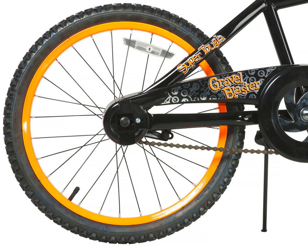 The Magna Gravel Blaster 20-inch Boys Bike by Dynacraft is built ready to cut up some dust! The sleek bike showcases a black high-gloss paint finish on the frame and bright orange paint finish on ...