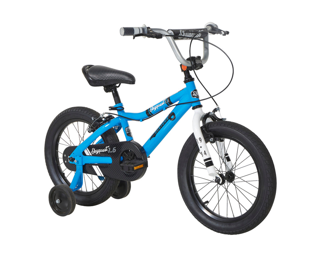 The Duzy Customs collection is a lineup of retro childrens’ bikes that both boys’ and girls’ will absolutely love! This collection includes bikes from 12” to 18” and come in red, blue, orange, green and pink. The bike features a sturdy steel BMX frame, caliper brakes, padded saddle, and quick release seat post. The training wheels are both adjustable and removable which will help riders grow into the bike and ride on their own terms. The Duzy Customs bikes are easy build bikes which means the bike will be able to ride in only a couple short steps!