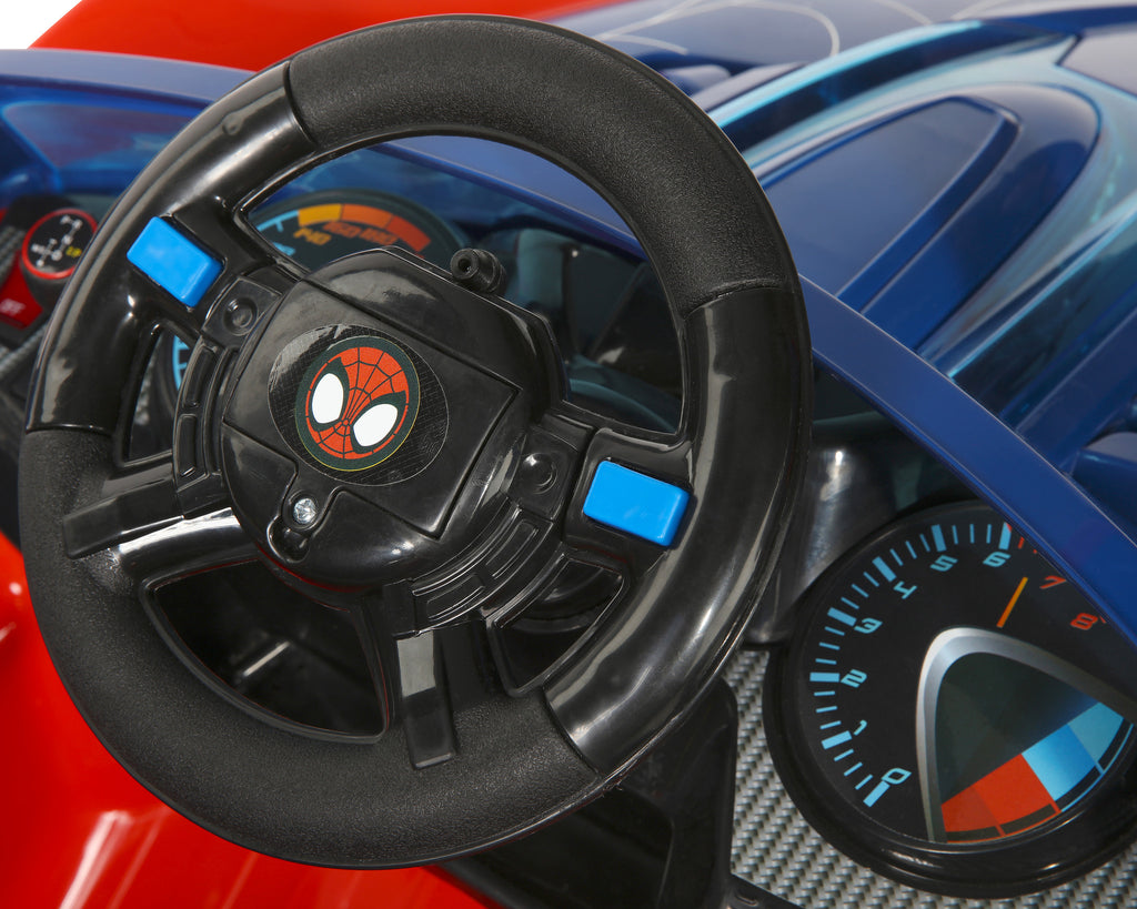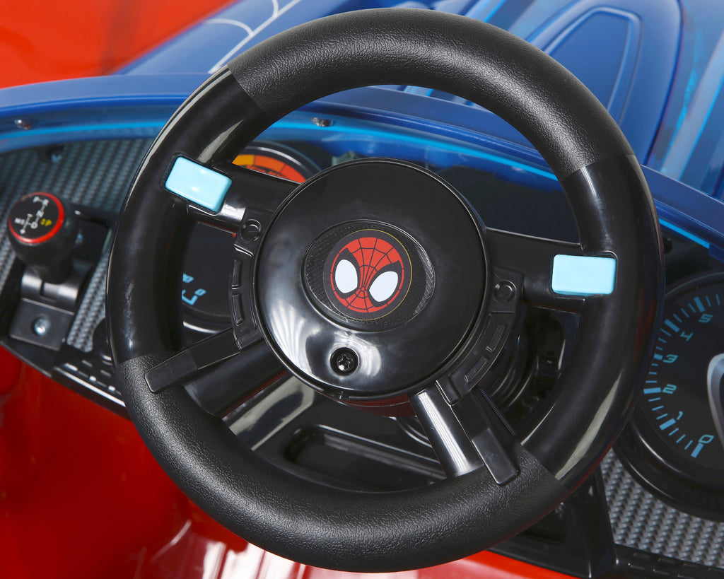 This 6 Volt Super Car is super-decked out in custom Spider-Man graphics. The detailed red and blue car features spider and web graphics on the doors, wheels, and even the grill. Little Spider-Man ...