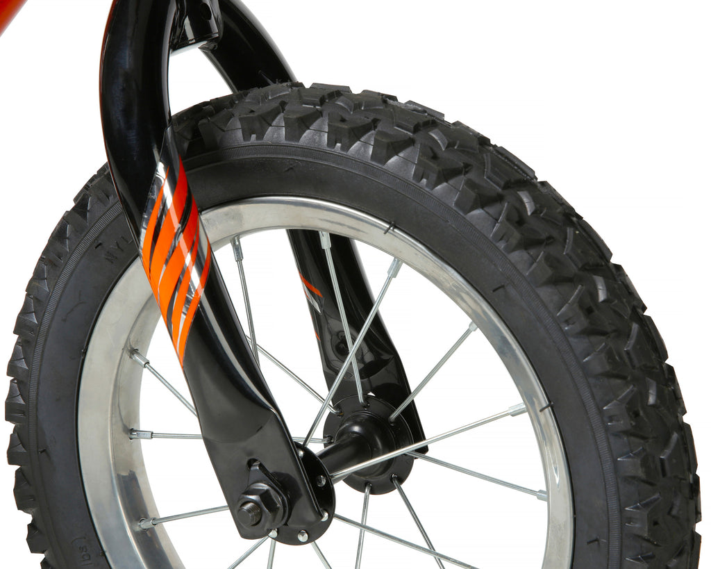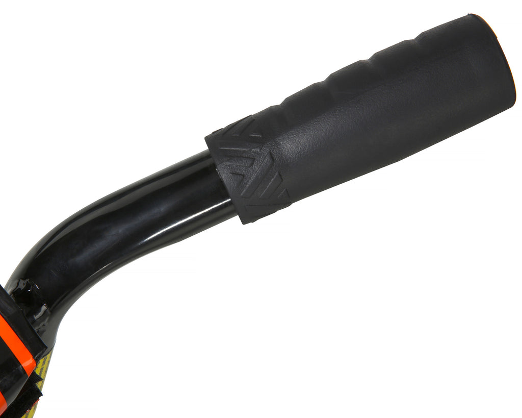 Be awesome, be epic, and cause some major damage! You’re sure to accomplish all three when you ride the Magna Major Damage 12-inch Boys Bike by Dynacraft. This BMX-style frame sports a bright orange and black deluxe paint finish, along with eye-catching custom graphics and colorful details on the handlebar pad, frame, and chain guard. Coaster brakes make stopping especially easy and removable/adjustable training wheels provide an extra level of stability until they’re ready to cruise on their own. An adjustable, padded seat also allows the bike to grow with them. The size and design of the bike are great for riders ages 3-5 years. Give your young one an epic ride on the Dynacraft Major Damage 12-inch Boys Bike.
