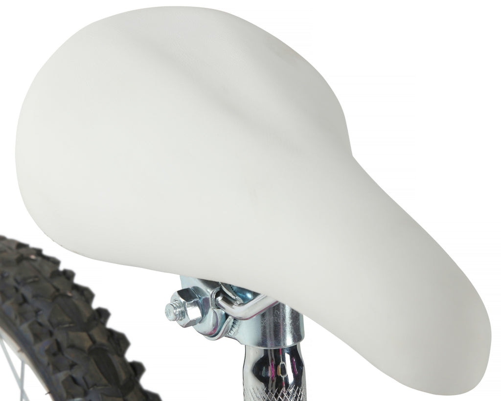 The Dynacraft Magna Sapphire 16-inch Girls Bike is designed to make young girls feel confident and cool while riding. The pink paint finish on the frame, along with the white handlebars and fork, are a perfect match for the purple and blue details throughout the bike. The custom graphics and colorful details on the handlebar pad, top tube pad, and chain guard will catch the eyes of onlookers as she rides through the neighborhood. Shiny handlebar streamers that blow in the wind add some extra excitement to every ride. Coaster brakes make stopping easy and removable/adjustable training wheels help ensure a fun and steady ride for those just learning to ride. An adjustable seat post allows the bike to grow with her, too. The 16-inch wheels and overall design are great for children ages 4-8 years. The Magna Sapphire 16-inch Girls Bike is truly a gem of a bike for young riders ready to cruise on their own.